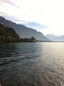 The weather was beautiful. We almost walked all the way to Chateau de Chillon, which is one of the most visited sites in Switzerland. It is a castle carved out of stone on the lakeside. Perhaps it’s best known for Byron’s poem, The Prisoner of Chillon. The poet even carved his name on the column in the dungeon where he believed the prisoner was chained.