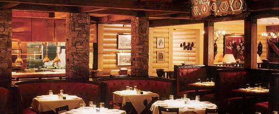 The Blue Ridge Grill is a beautiful restaurant. It looks like a ski lodge, especially this time of year when it’s all dressed up for Christmas. The stacked stone fireplace and timbers are warm and welcoming. There’s an open kitchen so you can see the chefs in action preparing your dinner. And with the red leather booths, it really is quite a classy place.