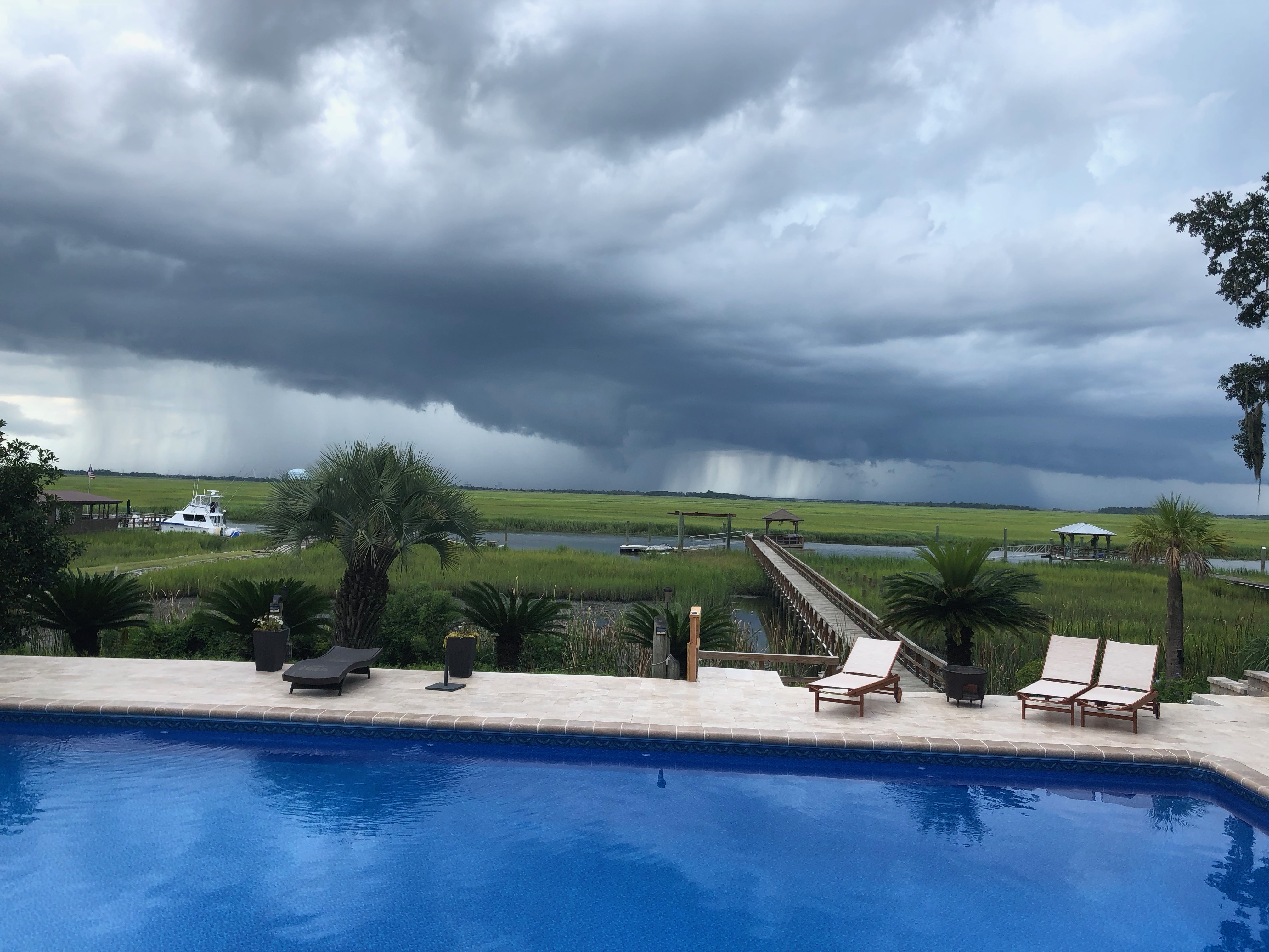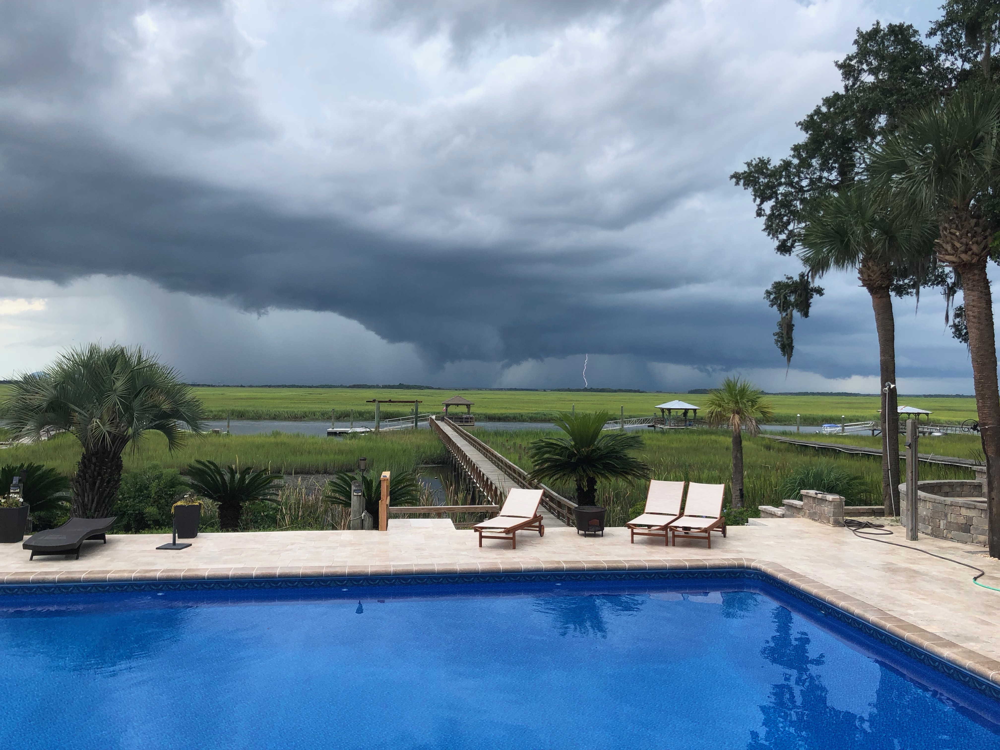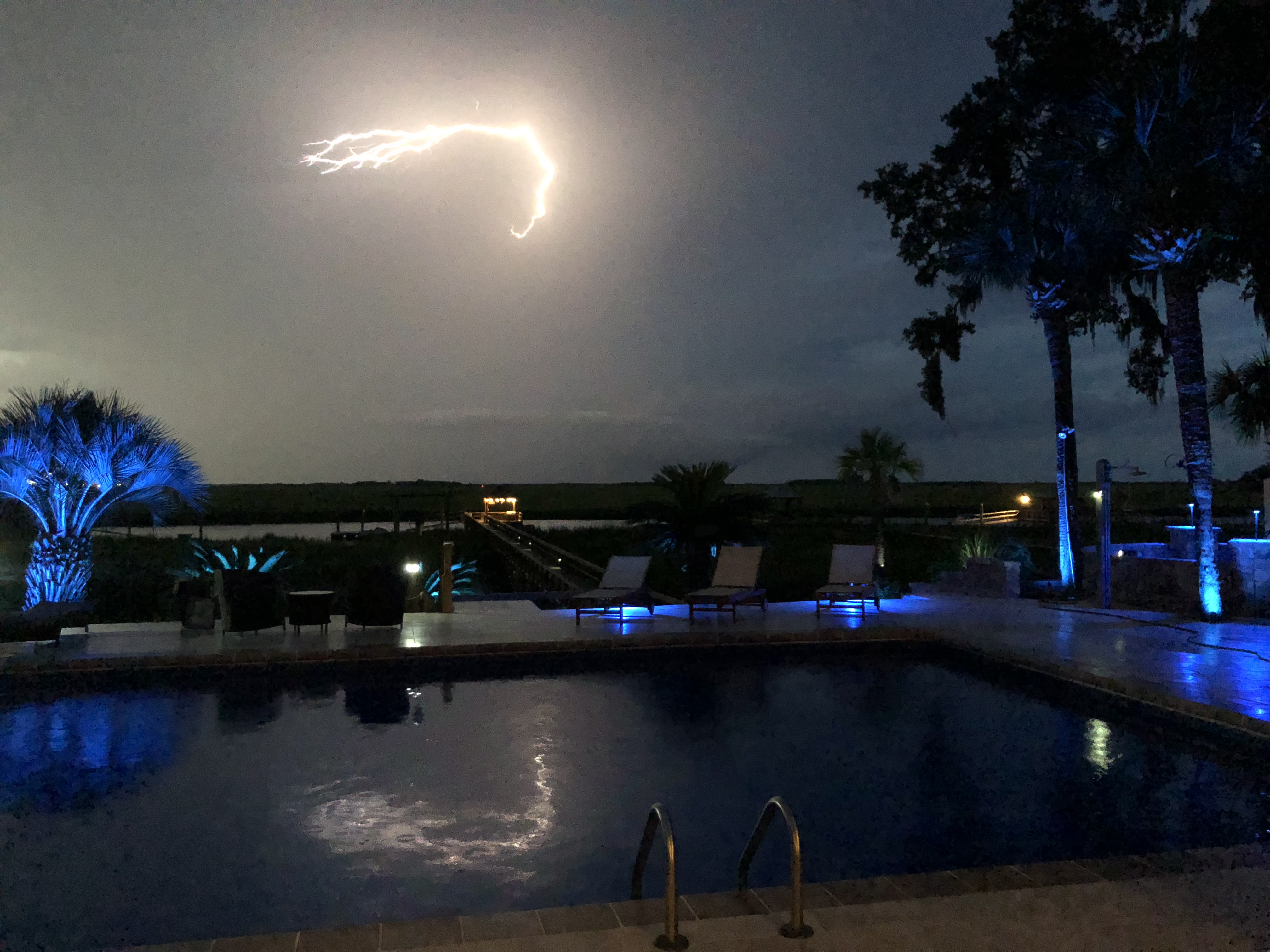 We’ve enjoyed some incredible light shows this past month, when the clouds have built up and it has started storming, usually over South Carolina.
