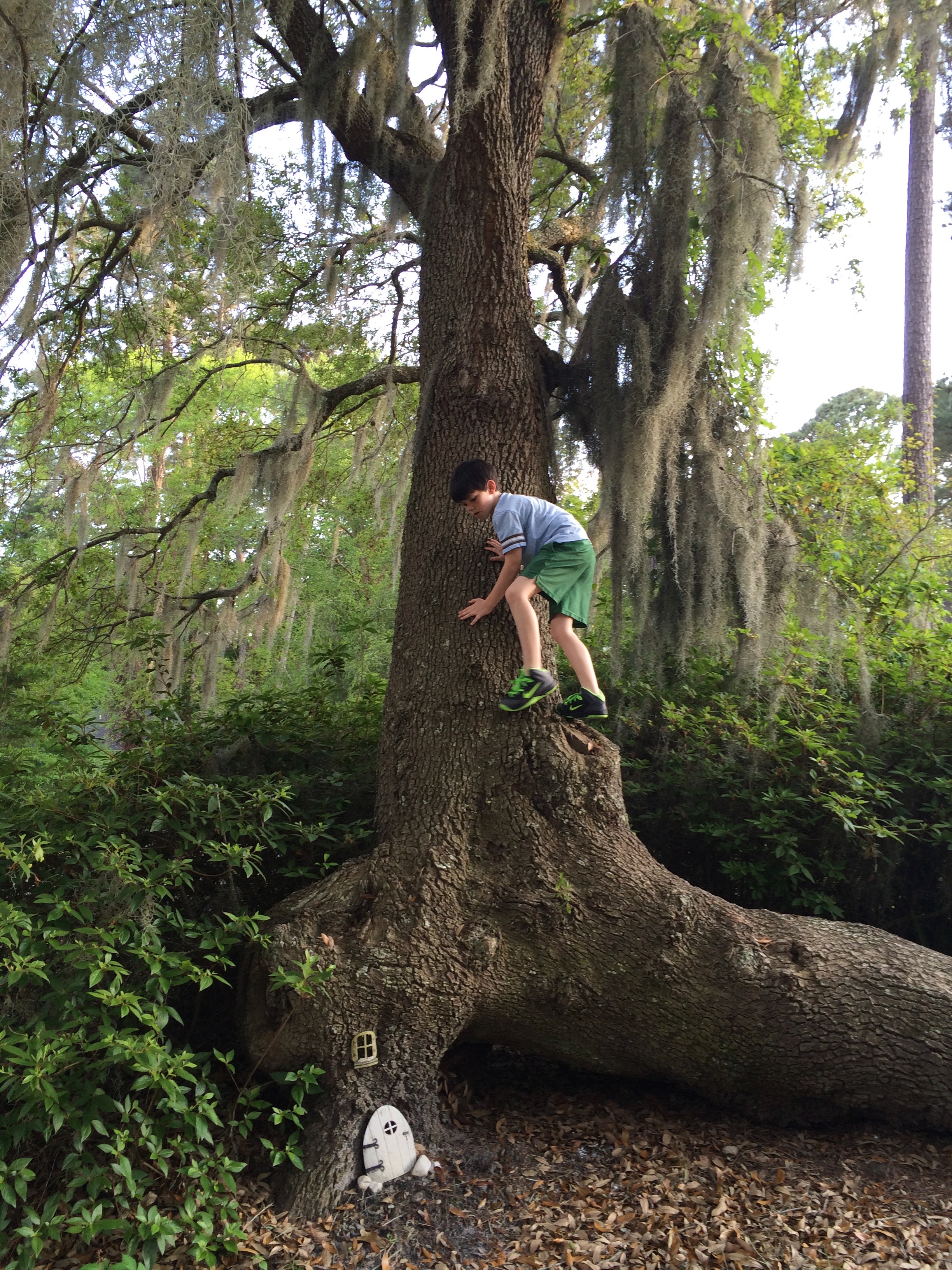 My first house was in a beautiful neighborhood called Dutch Island, a tight-knit community with great amenities – a fantastic pool and playground, tennis courts and a boat ramp and dock. Just look at my little ninja on this cool tree: