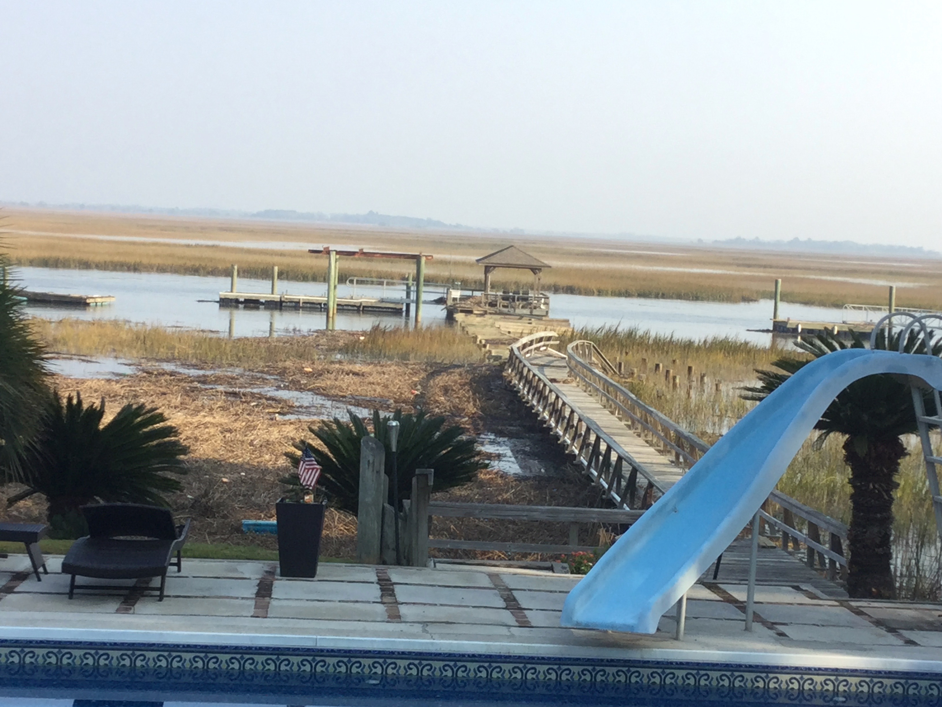 Hard to believe the slide survived! We made the repairs, and when Hurricane Irma hit last year, we were lucky and didn’t sustain any damage. But we felt like we now had oceanfront property because even the marsh was covered by water!
