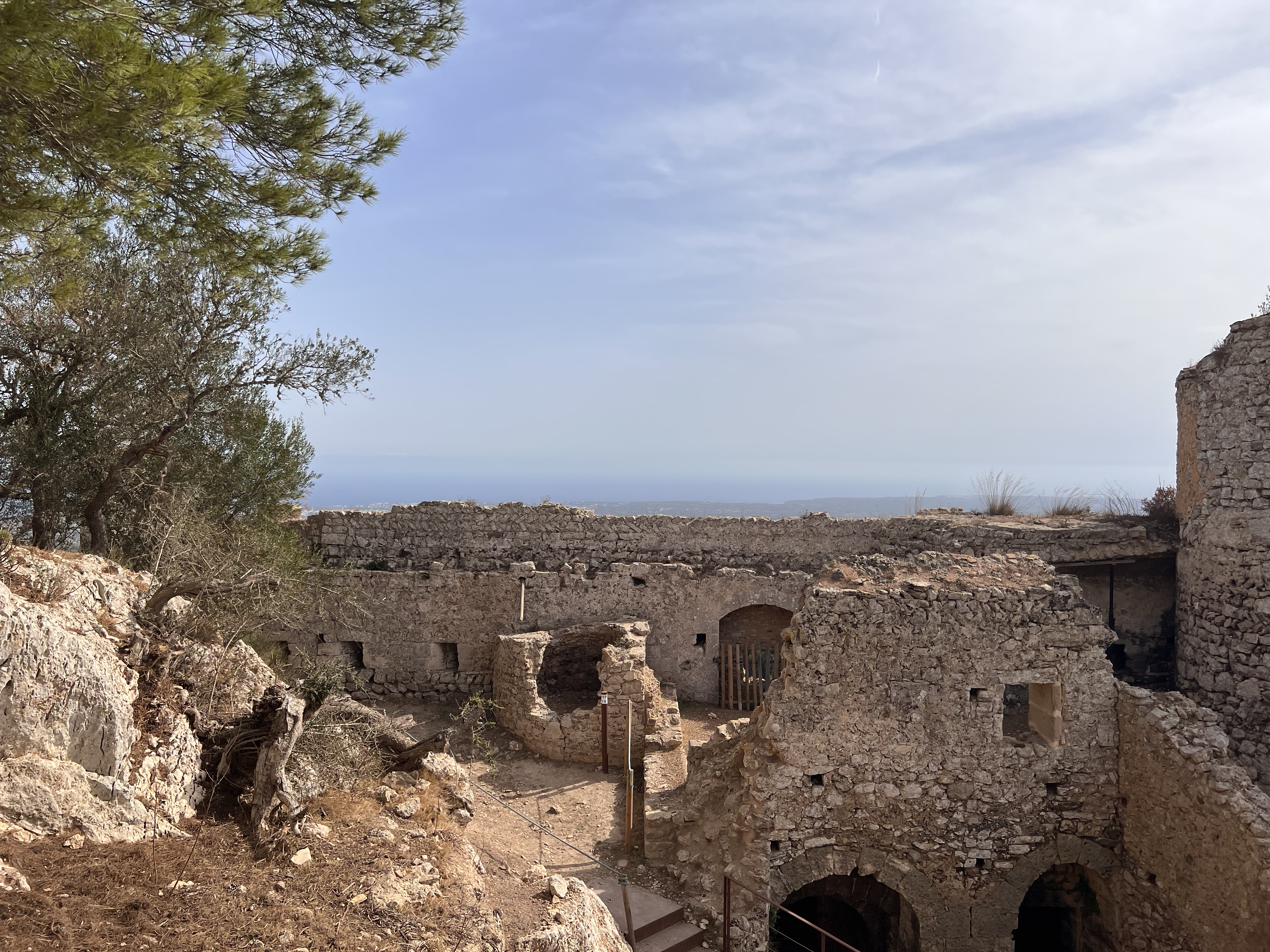 Ok, it’s not really in my backyard, but it’s pretty close! Maybe 15 minutes away by car. It’s one of only three rock castles in Mallorca, so called because of the topography and system of walls that are adapted to the cliffs. It is located at the tippy top of the little mountain that it’s named after – Santuirí – and unfortunately it’s crumbling. But since it has been around since Roman times, that is not so surprising.