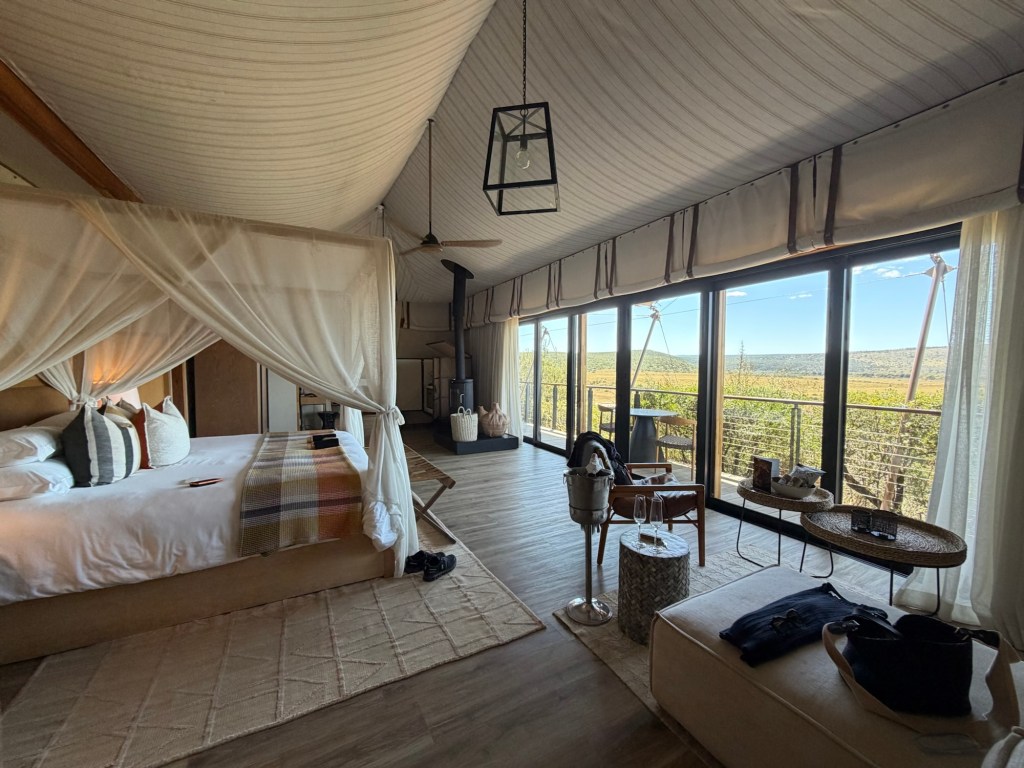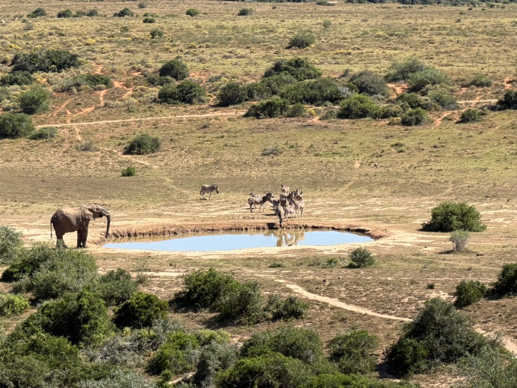 After Cape Town, we flew up to Port Elizabeth, which was a jumping off point for our safari. We chose Shamwari, a private game reserve and one of the largest private conservation initiatives in Southern Africa. We stayed at the flagship lodge, Sindile, (meaning ‘survivor’, and named after one of the reserve’s beloved rescue leopards) in beautiful luxury tents set on a ridge. The view over the river and plains was breathtaking, and the water hole below attracted a daily migration of animals that was so fun to watch.