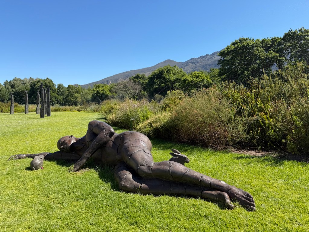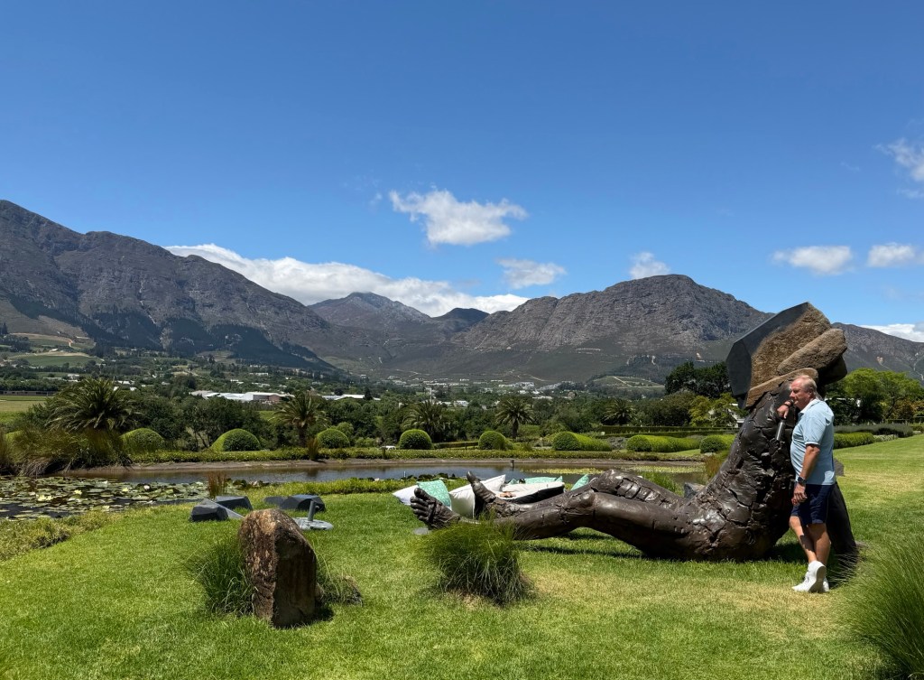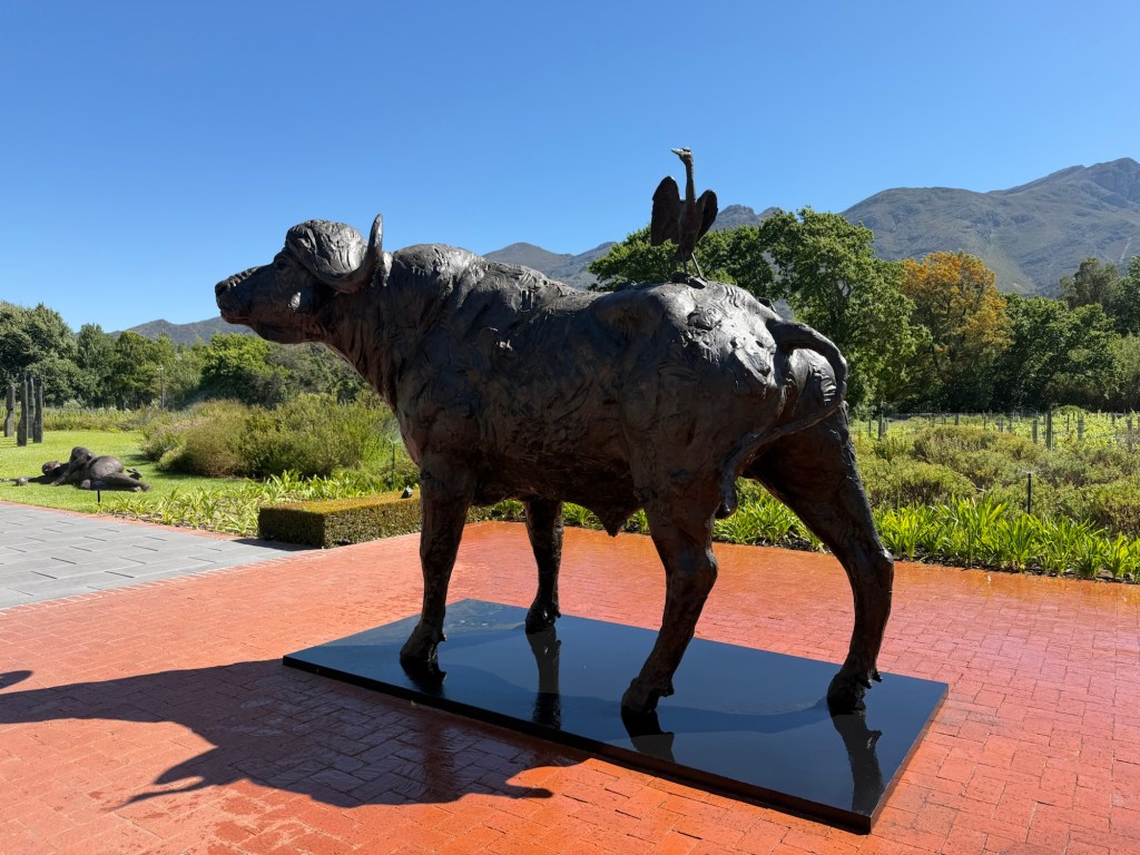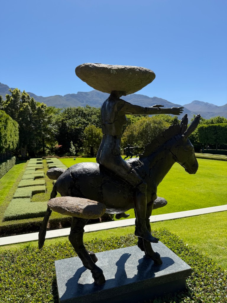 After all that nature, we were ready for some serious wine tasting, and our last stop was Franshhoek, one of the most beautiful valleys I’ve ever seen. We stayed in the fabulous Leeu Estates, which not only produces its own wine but also features local artists both on the grounds and in the lovely gallery on site.