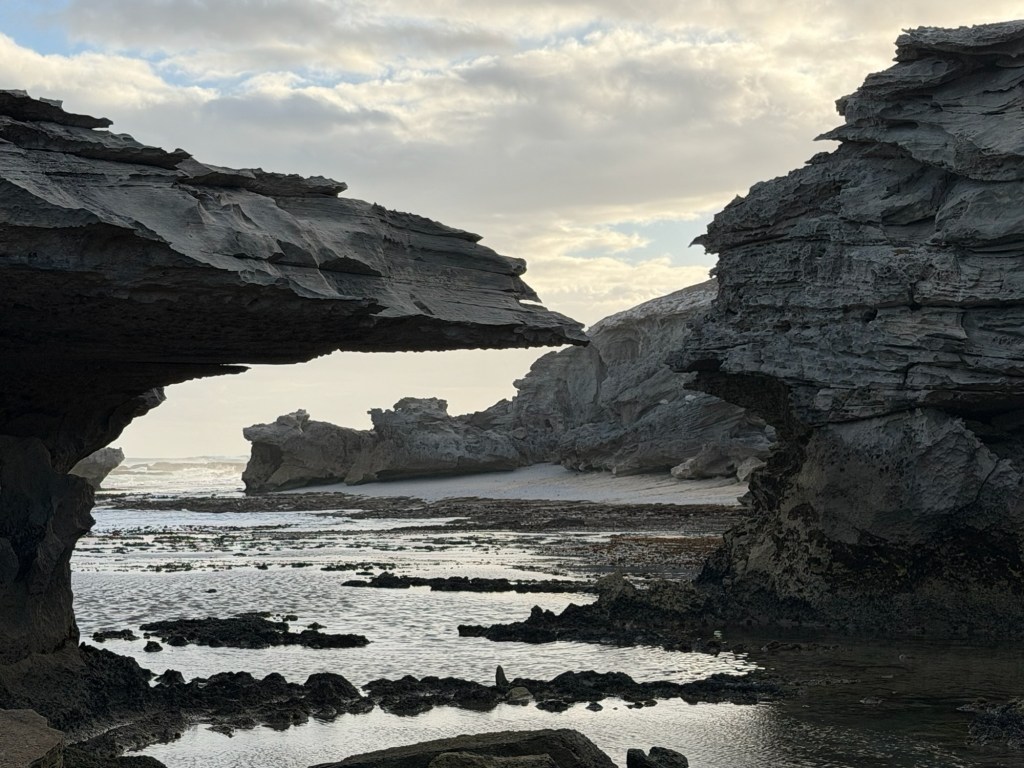 After Wilderness, we continued south and drove into the interior for a bit before making our way along a dusty gravel road which brought us to De Hoop Nature Reserve. Only three hours east of Cape Town, it seemed a world away, where the mountains and the ocean flank 34,000 hectares of beaches, dunes, wetlands and fynbos. The Reserve is at the southern tip of Africa, and incredibly, it is one of only six floral Kingdoms of the World – and also a World Heritage Site. It is a prime location for spotting migrating whales, but our guide told us that unfortunately there weren’t very many this year. In fact, the numbers were down from well over a thousand last year to just fifty-something this year.