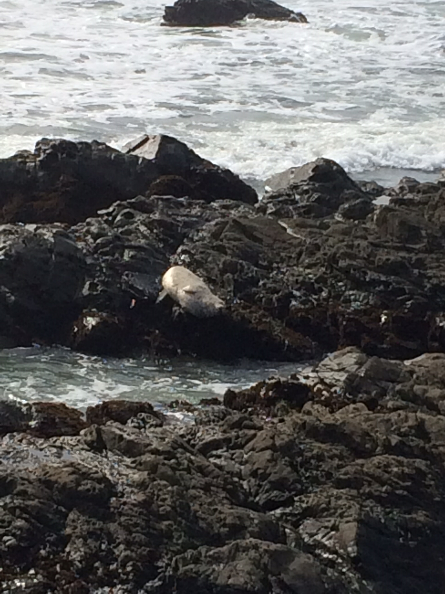 It was cool and cloudy, and the only place open for lunch was the Moonstone Beach Bar and Grill. Great location, but mediocre food. The highlight was seeing a few seals lazing on the rocks. One of them even looked up and waved at us!